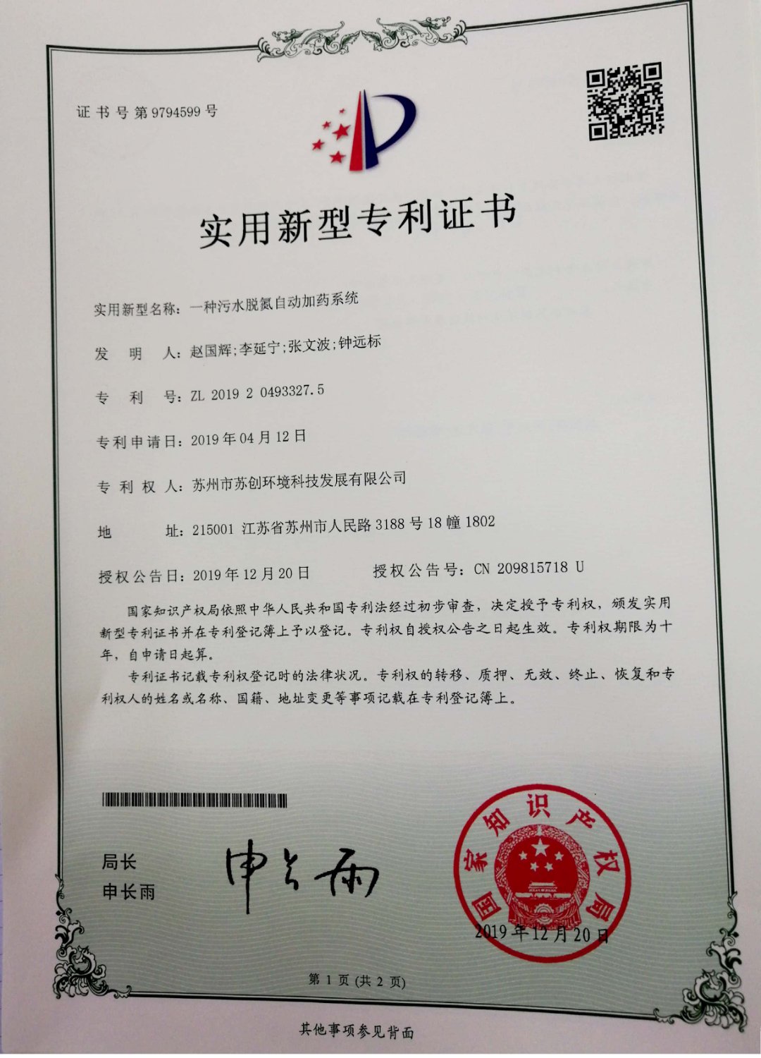 磁分離+反硝化+曝氣生物濾池一體化裝備 采用磁沉淀和曝氣生物濾池相結合的水體凈化工藝蘇創環境 · 專利與榮譽成果